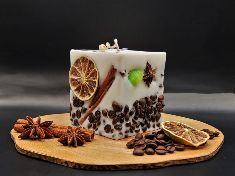 Design Inedit: Fiecare lumânare este decorată manual cu detalii fine, incluzând boabe de cafea aromate, anason stelat, batoane de scorțișoară și felii de citrice uscate. Aceste elemente naturale conferă lumânării un aspect rustic și elegant, perfect pentru a completa orice decor.
