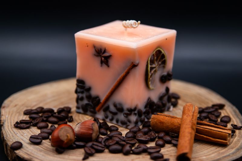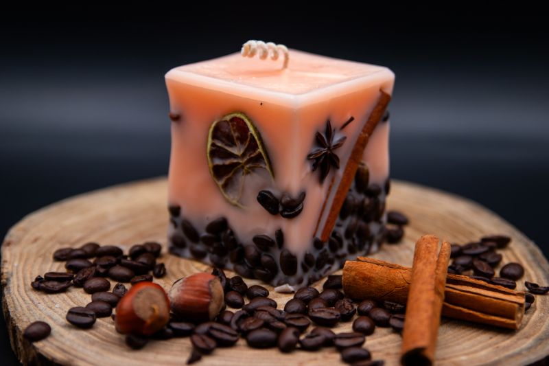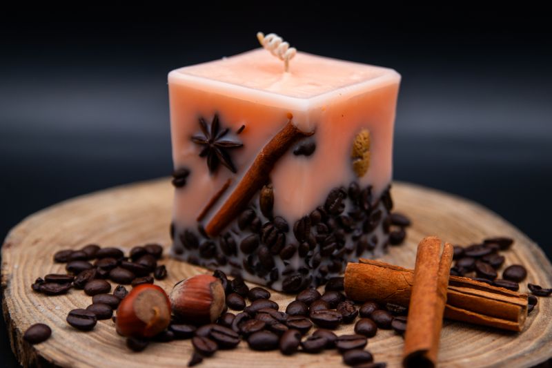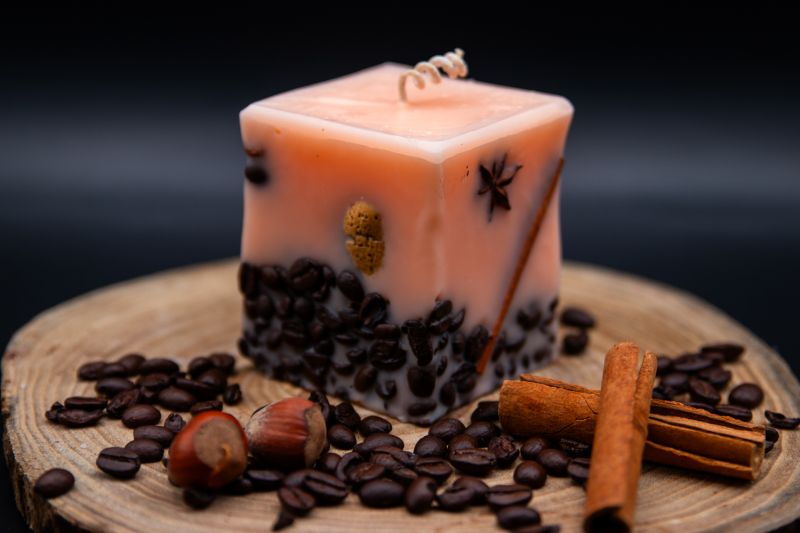Design Unic și Natural: Fiecare lumânare este unică, fiind decorată cu boabe de cafea aromate, anason stelat parfumat și un baton de scorțișoară îmbietor. Aceste elemente naturale nu doar că îmbogățesc vizual lumânarea, dar contribuie și la crearea unei atmosfere calde și primitoare.