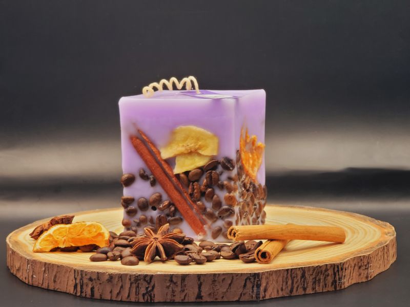 - Design Unic și Atractiv: Decorată cu boabe de cafea, anason stelat, felii de portocală uscată și batoane de scorțișoară, această lumânare este o operă de artă olfactivă și vizuală.