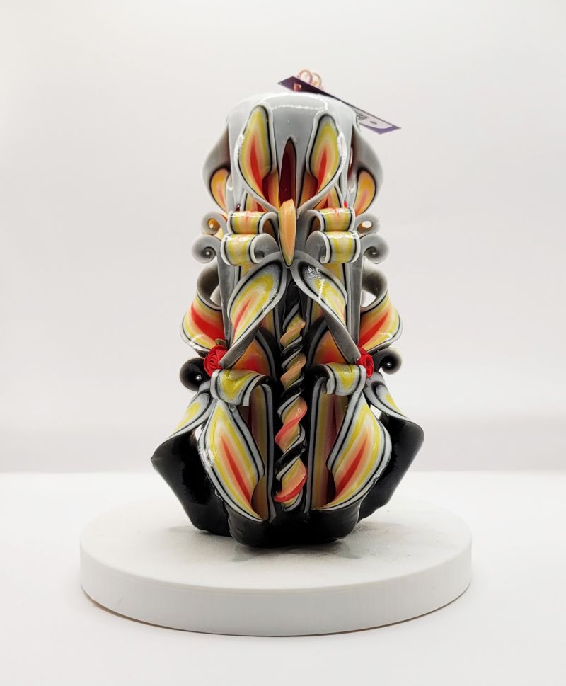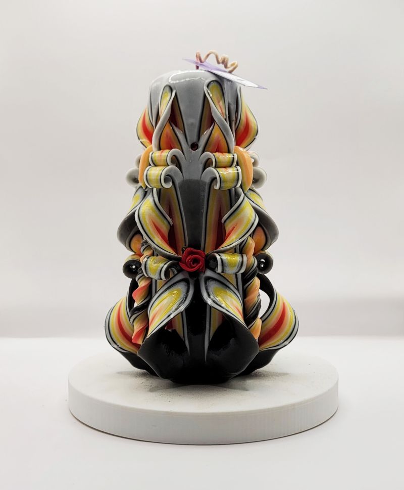 Lumânare sculptată manual, realizată cu grijă din straturi colorate atent împletite. Fiecare detaliu este lucrat de mână, oferind o piesă unică, decorativă și elegantă, perfectă pentru cadouri sau pentru a adăuga rafinament oricărui spațiu.