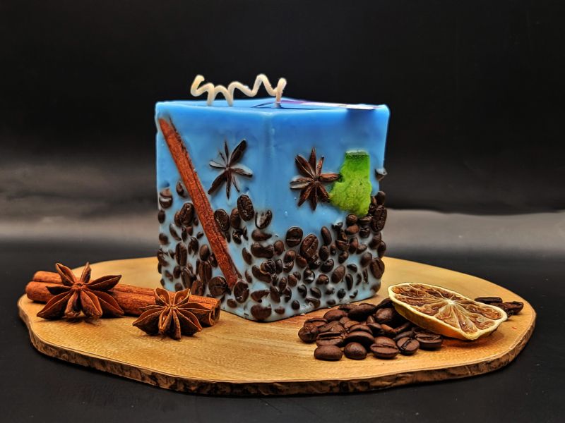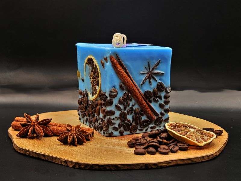 - Design unic: Fiecare lumânare este decorată manual cu boabe de cafea, felii de portocală uscată, anason stelat și baton de scorțișoară, transformând-o într-o mică operă de artă.